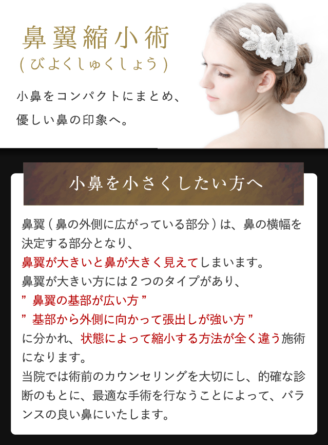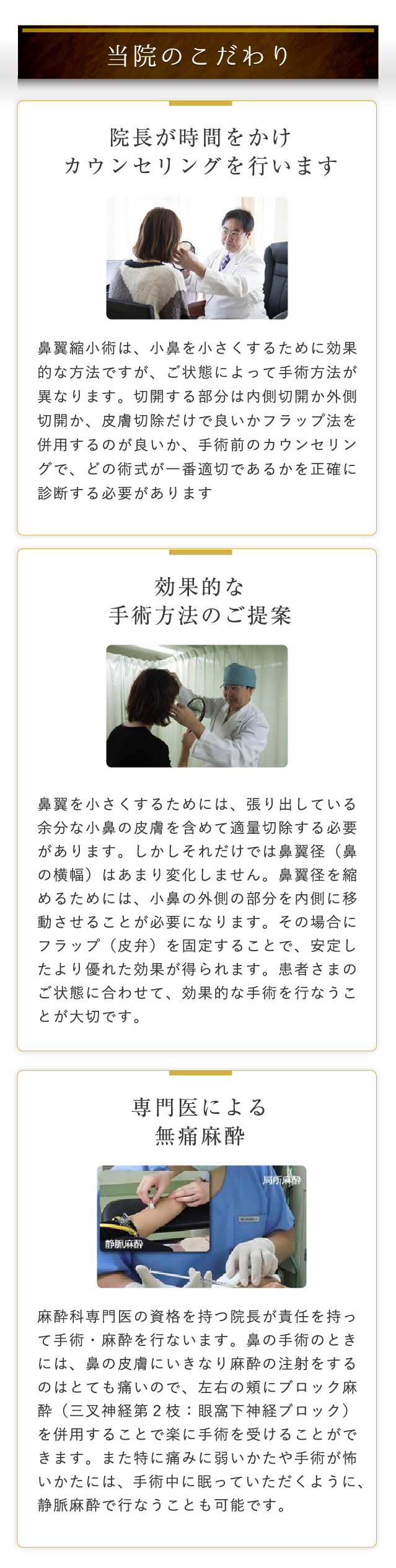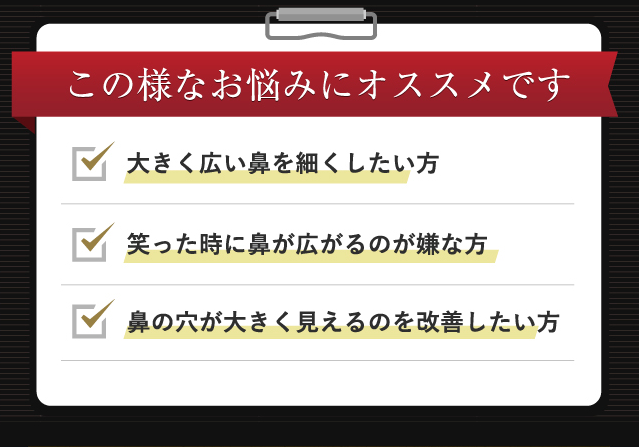 - 正面から見て鼻の穴が大きく見えてしまいます。これを改善するには、どのような方法がありますか?
